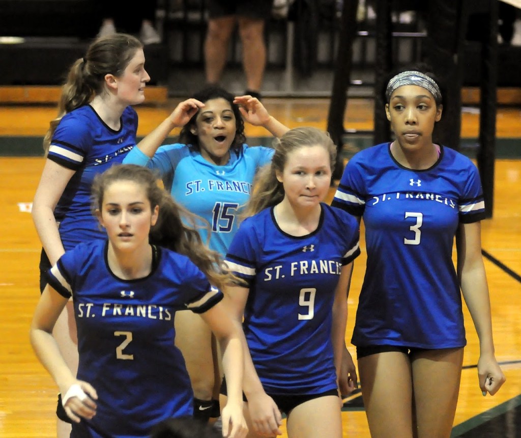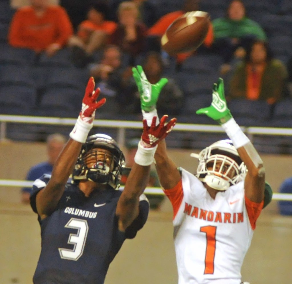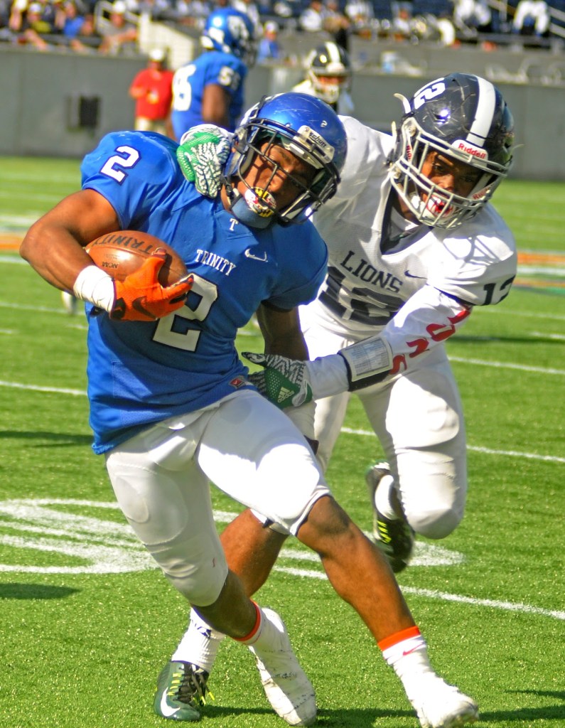 Cardinal Gibbons running back Jadon Morgan, with help from the Chiefs’ line, drags a Bolles defender on a carry during the second half of Cardinal Gibbons’ 35-21 victory over Jacksonville Bolles on Thursday, Dec. 17, 2020, in the Class 4A FHSAA State Football Championship Game at Bobby Bowden Field at Doak Campbell Stadium in Tallahassee. (Lynn Ramsey | Florida Catholic)Cardinal Gibbons blockers Fabiana Capone, left, and Jessica Cinci (13) block a Bishop Kenny attack during the fourth game of the FHSAA Class 4A volleyball state final match Sunday, Nov. 15, at Suncoast Credit Union Arena in Fort Myers, Fla. Cinci had four blocks. Bishop Kenny defeated Cardinal Gibbons 29-27, 25-18, 17-25, 25-20 to win their third state title.in Gainesville St. Francis’ Class 3A state volleyball match against Naples Seacrest Country Day on Friday, Nov. 11, 2016, at West Port High School in Ocala. St. Francis won the match 25-19, 28-26, 25-23 for their first state championship. (Lynn Ramsey photoSt. Francis libero Madison Mazon is still elated over winning a point as her teammates head to the bench for a timeout in Gainesville St. Francis’ Class 3A state volleyball match against Naples Seacrest Country Day on Friday, Nov. 11, 2016, at West Port High School in Ocala. St. Francis won the match 25-19, 28-26, 25-23 for their first state championship. (Lynn Ramsey photoChaminade-Madonna’s Jordan Williams (12) tackles Trinity Christian running back Jordan Williams in the second half of Chaminade-Madonna College Prep’s 24-13 loss to Jacksonville Trinity Christian on Saturday, Dec. 10, in the Class 3A state championship game at Camping World Stadium.Columbus receiver Xzavier Henderson outduels Mandarin defensive back Demario Douglas for a 45-yard touchdown during the third quarter Saturday, Dec. 8, 2018.Chaminade-Madonna’s Toumani Camara tries to split the Mainland defense during the first half Friday in The City Beautiful Invitational.